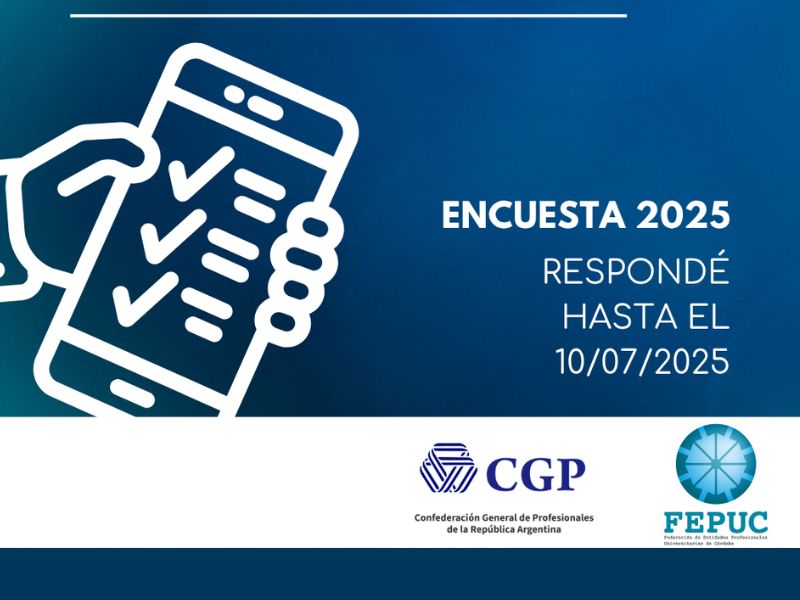 Desde la Confederación General de Profesionales (CGP) y las Federación del país te invitamos a sumarte a la Encuesta Nacional 2025, un estudio federal que releva las condiciones laborales de quienes trabajan profesionalmente en todo el país.